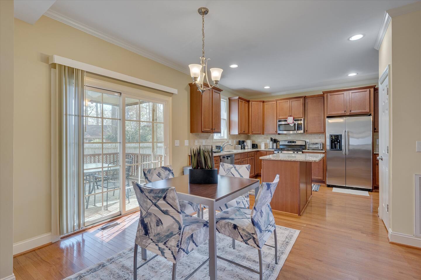 Spacious and comfy 4BR Cary gem. Perfect for relocating families with or without pets. Fenced back yard, garage and screened in porch. Located near downtown Cary off of Walnut St and hosts up to 9 guests. Directly across the street from beautiful Walnut park, perfect for dog walking and meeting new friends.